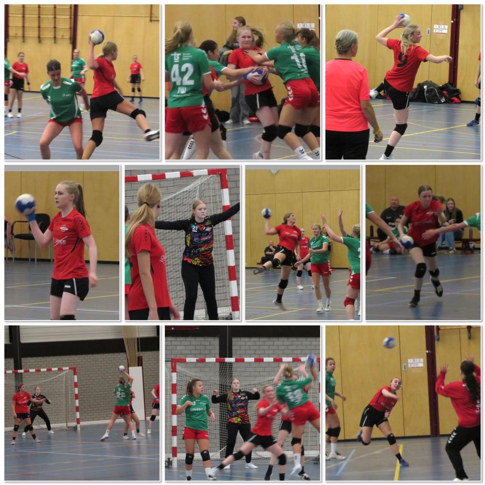 Met goed keeperswerk van Kirsten bleef de thuisploeg lang op de twaalf steken. Maar daarentegen pakte Wasmeer wel hun doelpunten mee. Met snelle breaks via de hoek, doelpunten op de bekende wijze van onze nestor en penalty’s van het penaltykanon liepen we uit naar 12-19. Zelfs de goed opgeleide keepster van onze tegenstander uit onze opleiding was hier niet tegen opgewassen.